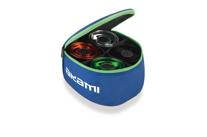 Akami Bag Akrs ideal for carrying reels or fishing reels, made with waterproof material that repels water and humidity. Equipped with a removable divider with 4 compartments for use as a reel holder.