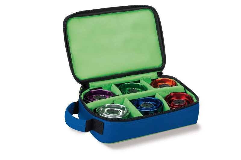 Akami Reel Case RB 21 ideal for carrying reels and fishing tackle, made of waterproof material that repels water and humidity. Reinforced zippers. Self-adjustable with velcro with six individual partitions.