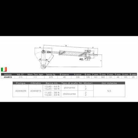 Aluminum cylinder, balanced (same number of turns from half stroke to full stroke). 3/8 connections.