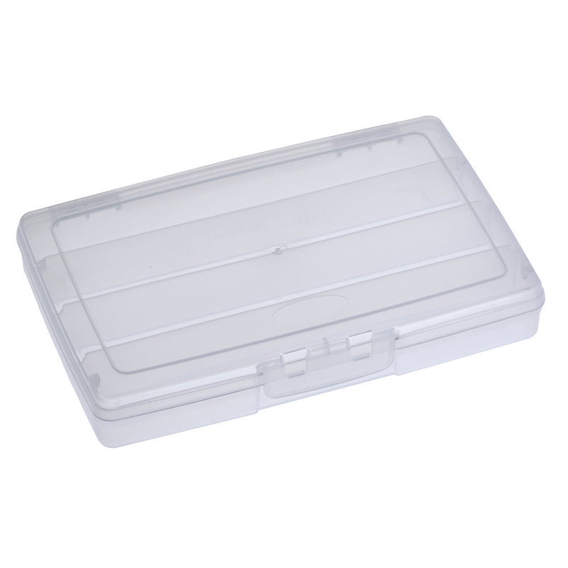 Fishing Plastic Small Parts Box 191/VN with internal dimensions 245 x 165 x 40 mm / 9.64 x 6.48 x 1.57 inch. Transparent color. This small parts box is available in different configurations: empty, with 4, 6, 7 or 12 internal compartments. Material: polypropylene.