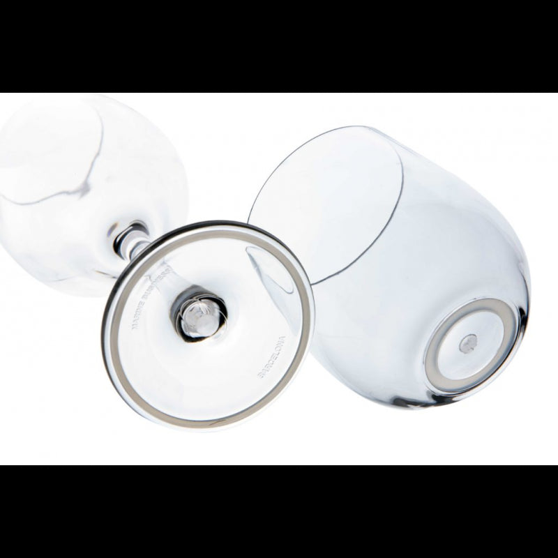 Glasses made of Tritan, an unbreakable plastic material with high transparency and brilliance, equipped with an anti-slip ring at the base that prevents them from slipping on the table. Capacity 414 ml. Set of 6 pcs.
