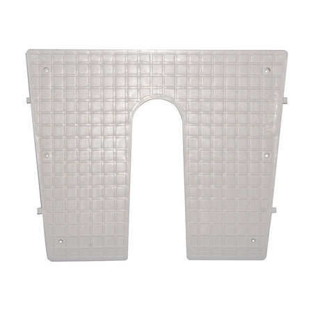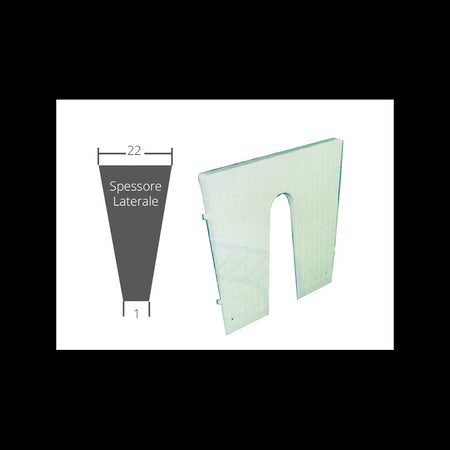 White PVC stern protection plate with wedge-shaped slot, suitable for correcting the inclination of the stern mirror. Size mm. 420 x 340, thickness from mm. 22 to mm. 1