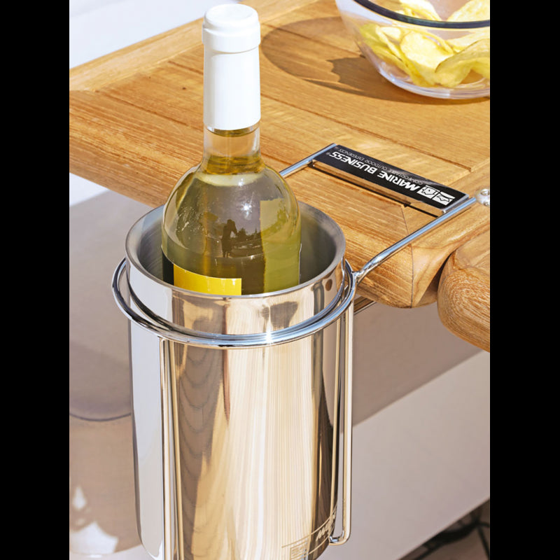 Stainless steel thermal bottle holder. It can be hung on the table, leaving more free space and preventing the bottle from falling.