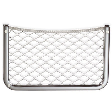 Storage net with upper thread in elastic braid. Fixing with screws. Dimensions mm 345X200