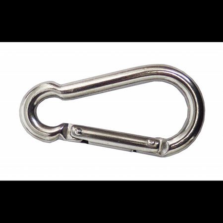 Moschettone in acciaio inox AISI 316 con ampia apertura trasversale che offre un maggior passaggio. Dimensioni: D 11mm. L 120mm. A 18mm. E 26mm.