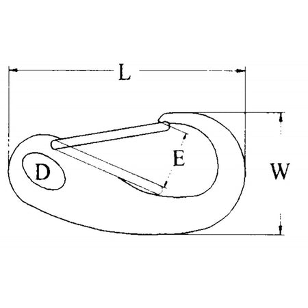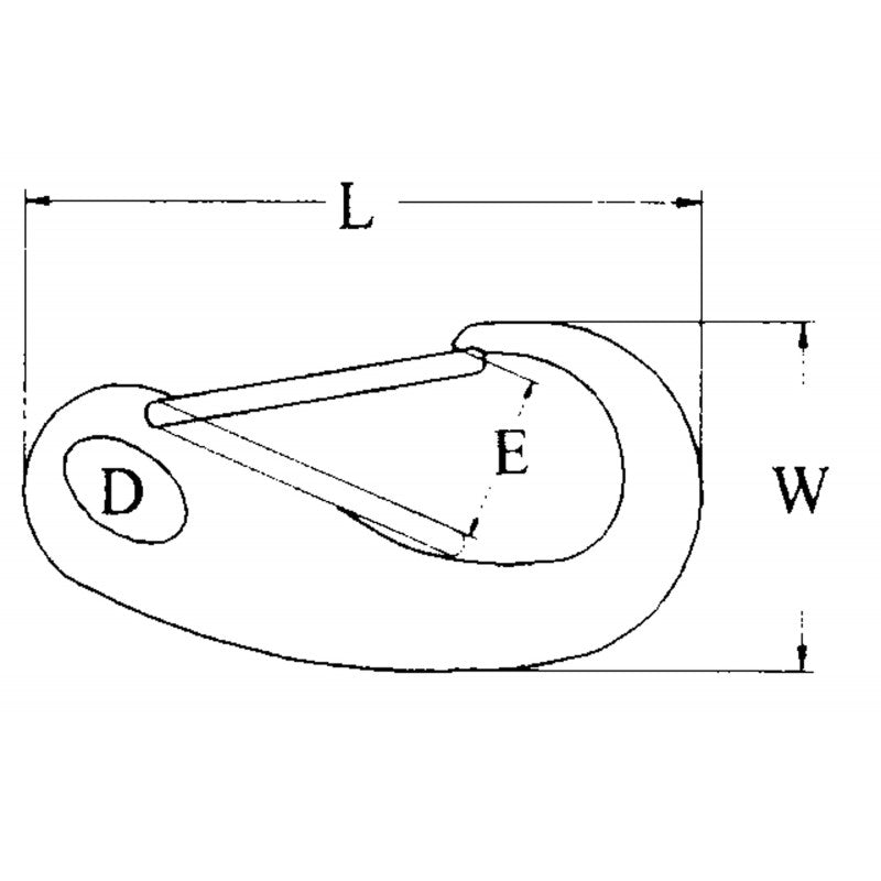 Moschettone in acciaio inox AISI 316 con apertura a molla. Dimensioni: L 70mm. W 31mm. D 10mm. E 13mm.